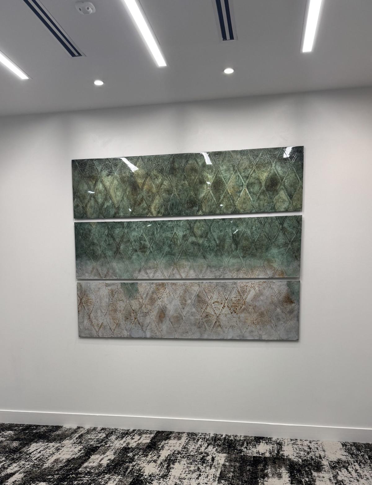 This painting is part of The Art in Fishing, a collection of works that explore the inherent beauty of each fish species through dynamic abstract compositions using weathered steel and acrylic paints.| capture the unique patterns and colors of each fish in a way that honors the natural world while celebrating the thrill of the catch. The resin finish preserves the moment, as if the fish were just lifted from the water.